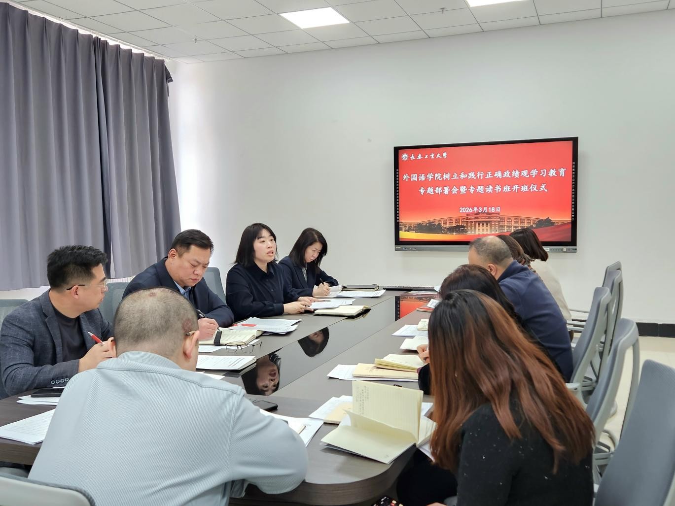 树立和践行正确政绩观学习教育专题部署会暨专题读书班开班在学院会议室举行。学院党委理论学习中心组成员、各党支部书记、系部(中心)主任及副主任参加会议,会议由院长李秀文主持。